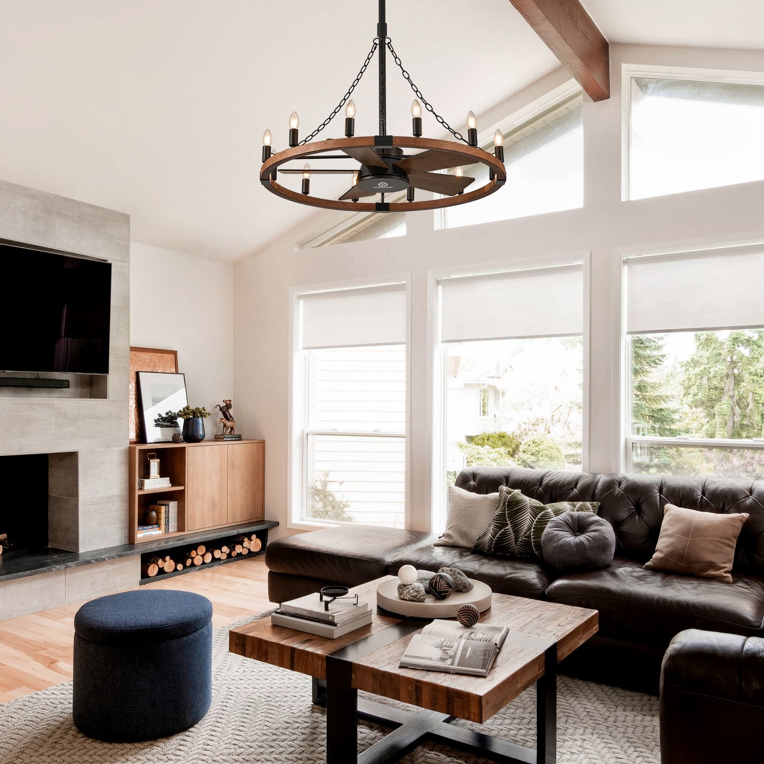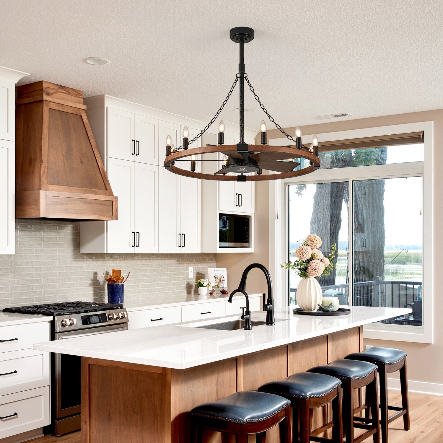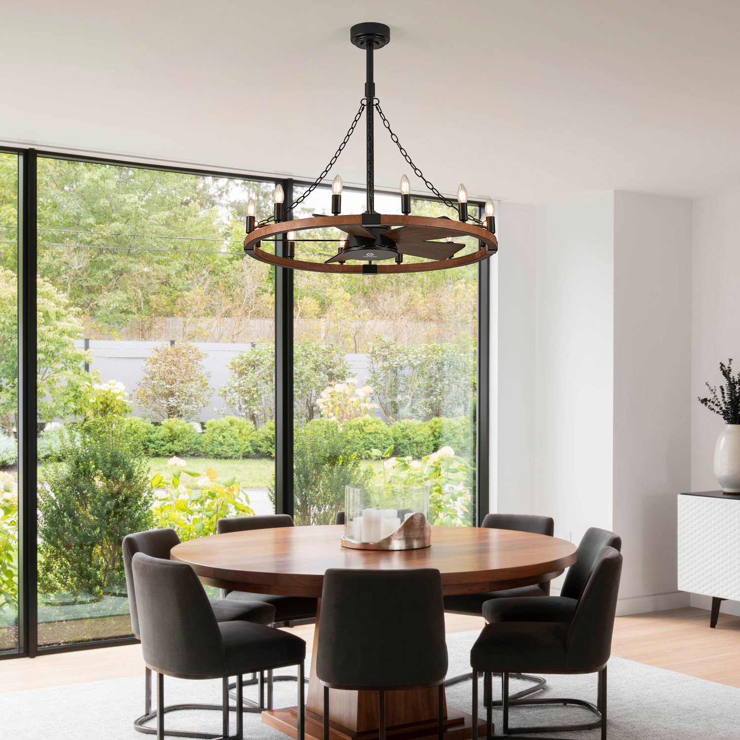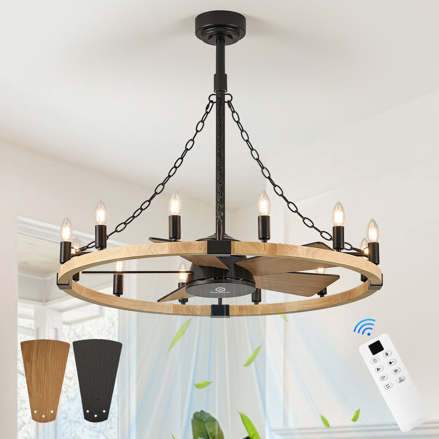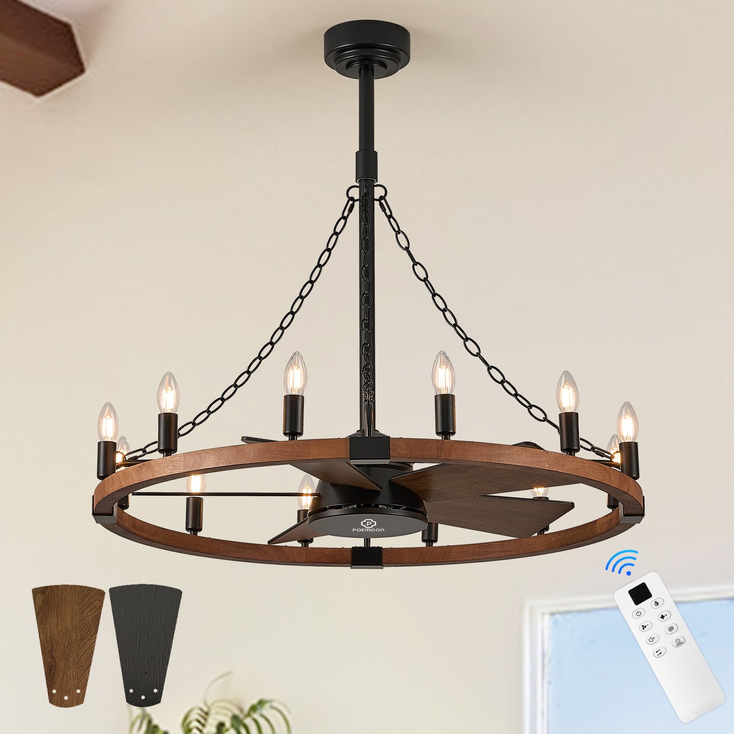 36in Wooden Wagon Wheel Chandelier Fans